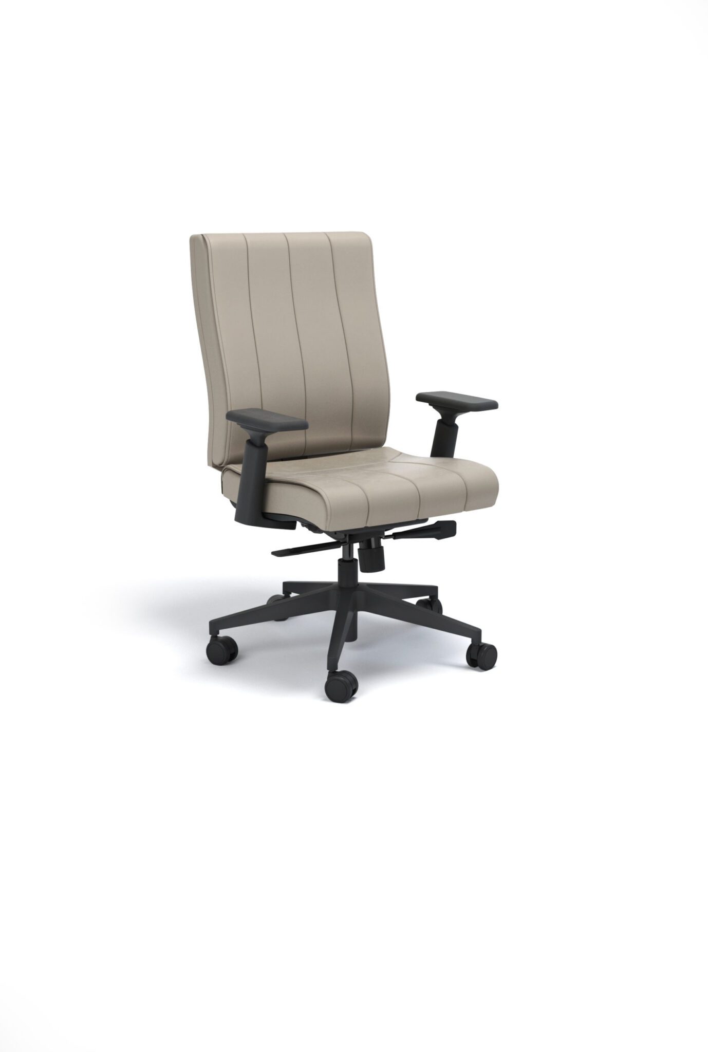 Assento com duas densidades de espuma, distribuídas conforme a área de apoio, além de Regulagem de Profundidade e Regulagem de Altura à Gás.