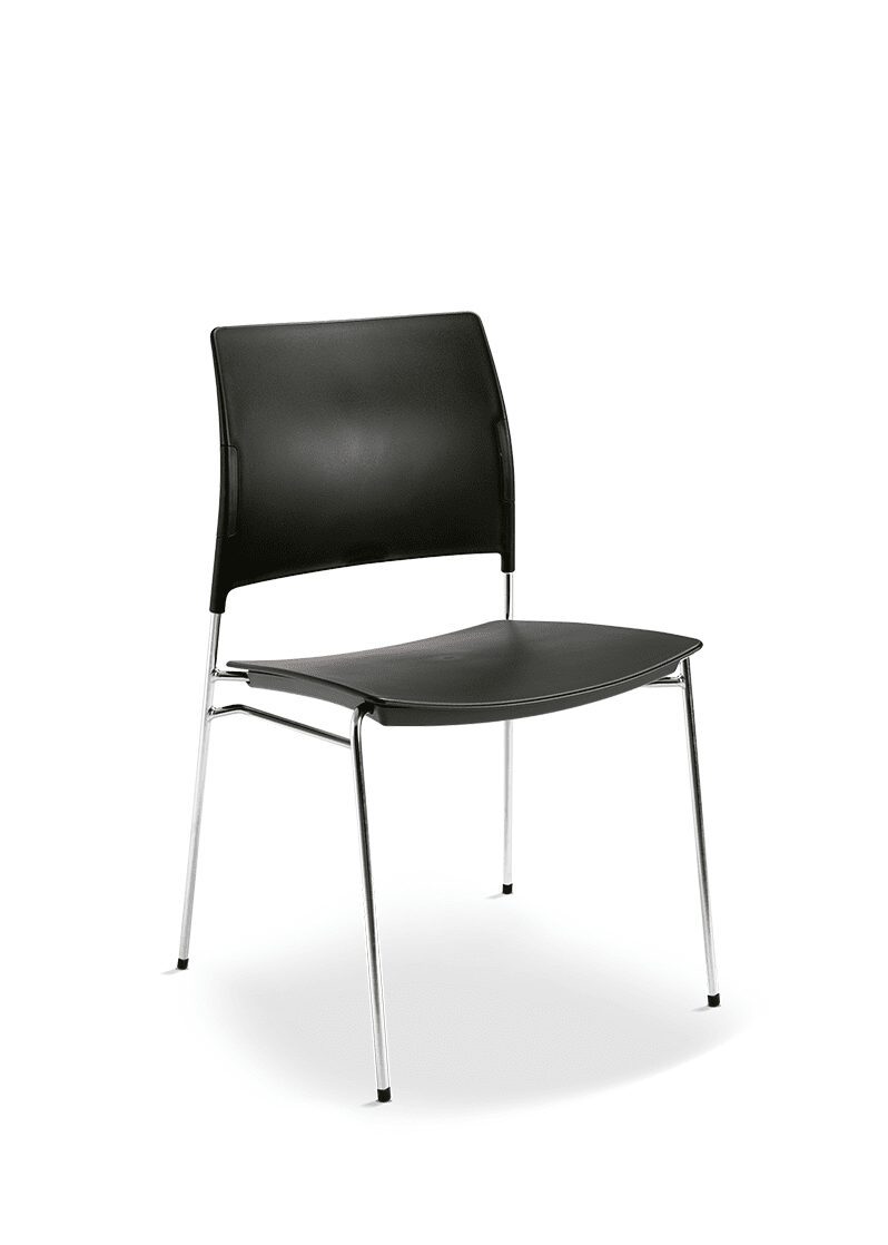 Empilhamento de até 15 cadeiras (no carrinho para transporte).