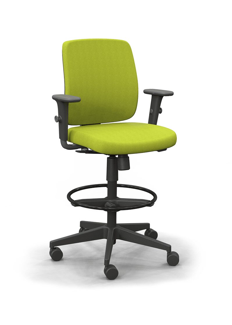 Assento em espuma injetada, Regulagem de Profundidade e Regulagem de Altura à Gás. Revestimentos disponíveis em Poliéster, Politex, Mescla, Grid, Space, Haven, CEC – Stilo, Vinil e Couro Natural.