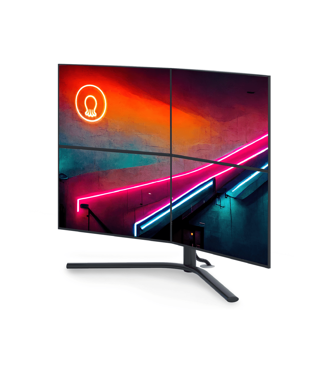 ClipWay 4 Octoo é um suporte móvel para 4 monitores com regulagem de altura e inclinação.
