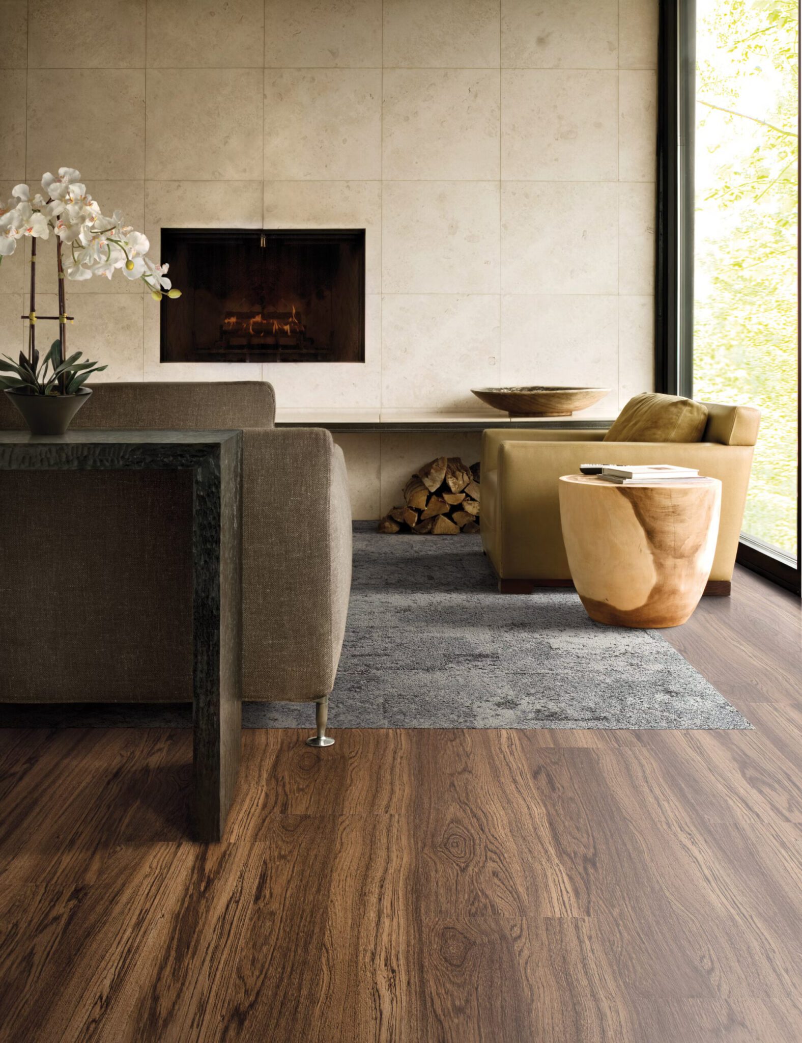 Natural Woodgrains apresentam uma variedade de acabamentos que vão do brilhante ao desgastado. A combinação de azulejos duros e macios resulta em opções de design deslumbrantes, criando um novo universo de escolhas de pisos integrados que dão vida a interiores contemporâneos.