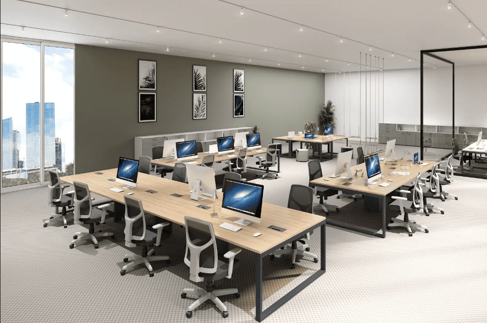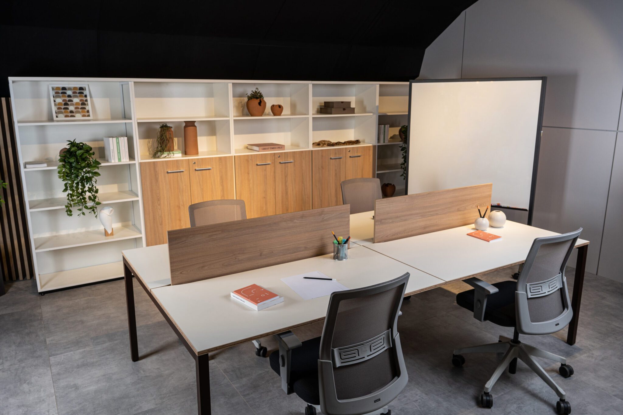 A Plataforma Corporativa Motiva com divisória acústica de aparência fosca e aveludada é projetada para melhorar a qualidade do som em ambientes únicos destinados a pessoas, contribuindo para prevenir a poluição sonora.